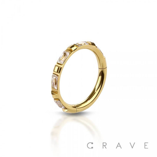 316L STAINLESS STEEL CZ PRONG CLICKER NOSE RING FOR SEPTUM