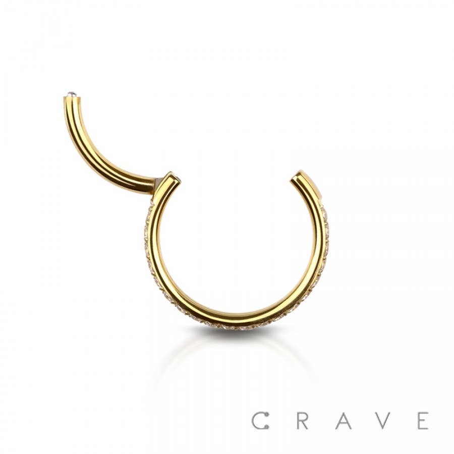 316L STAINLESS STEEL DOUBLE LINE CZ GEM STUDDED CLICKER HINGED SEGMENT RING