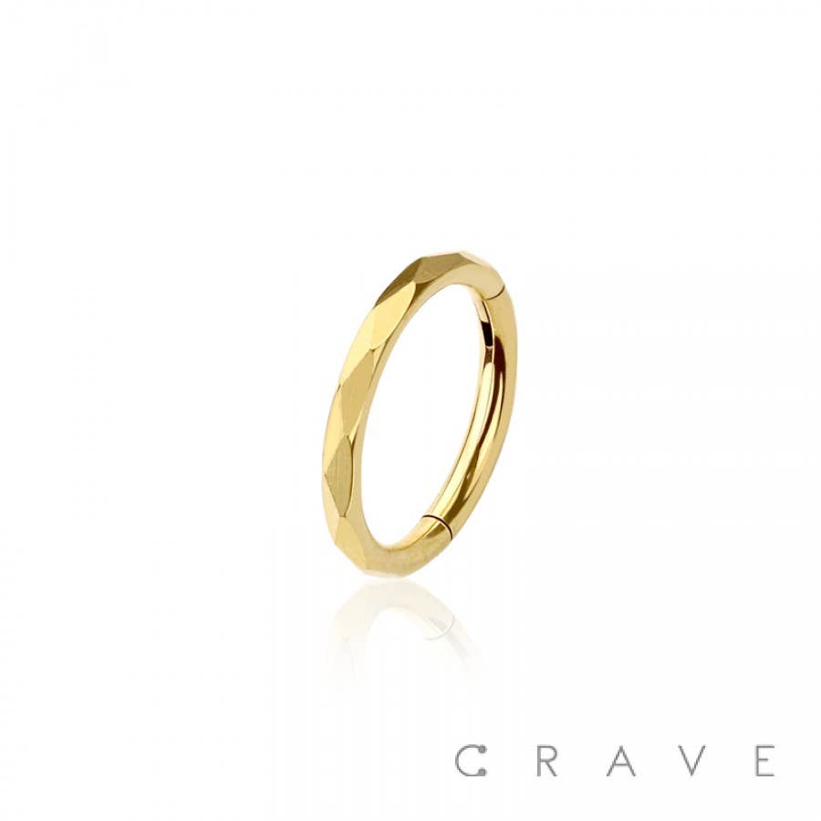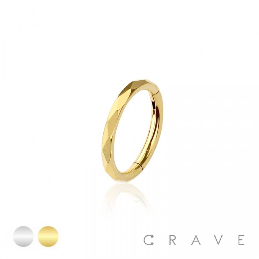 316L SURGICAL STEEL SWIRL CUT FACETED HINGED SEGMENT HOOP RI