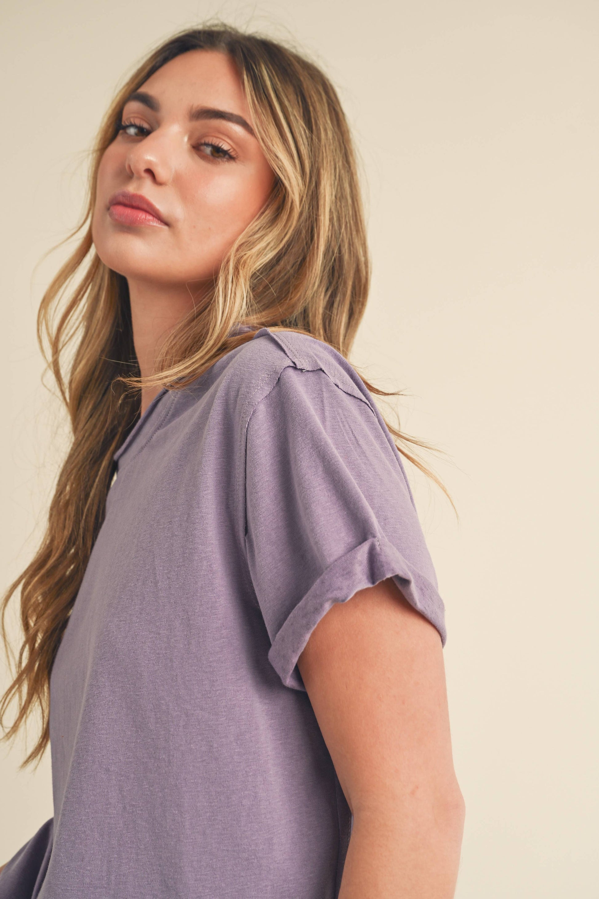Plum purple with Headrush Salon By Danielle Graphic on front. Rolled & Stitched sleeve style. oversized in width and fits a little shorter.