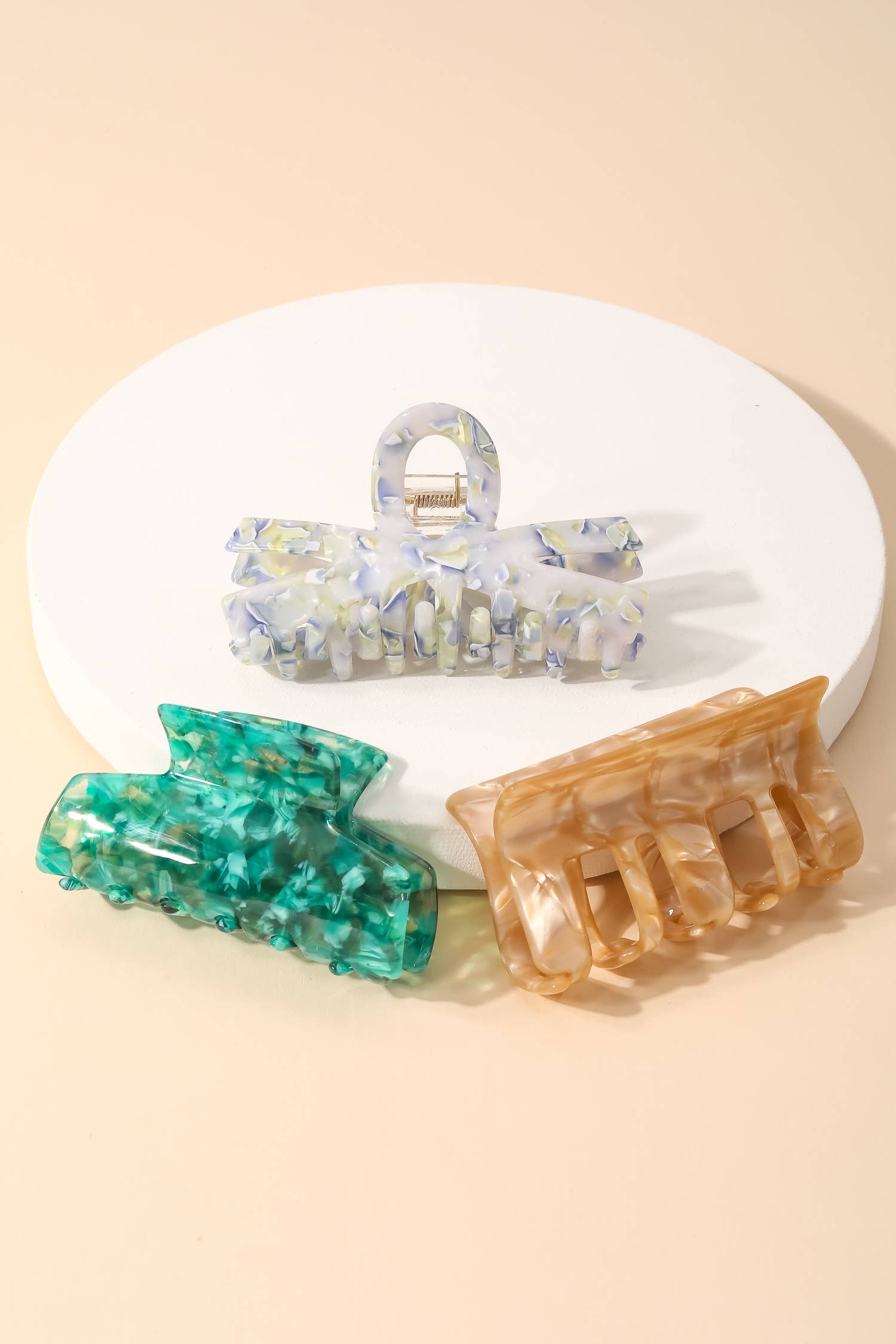 A gorgeous unique must have trending hair claw that has a acetate bow hair claw set design. Perfect for any occasion you have planned this Spring! This item is sold in packs of 1.