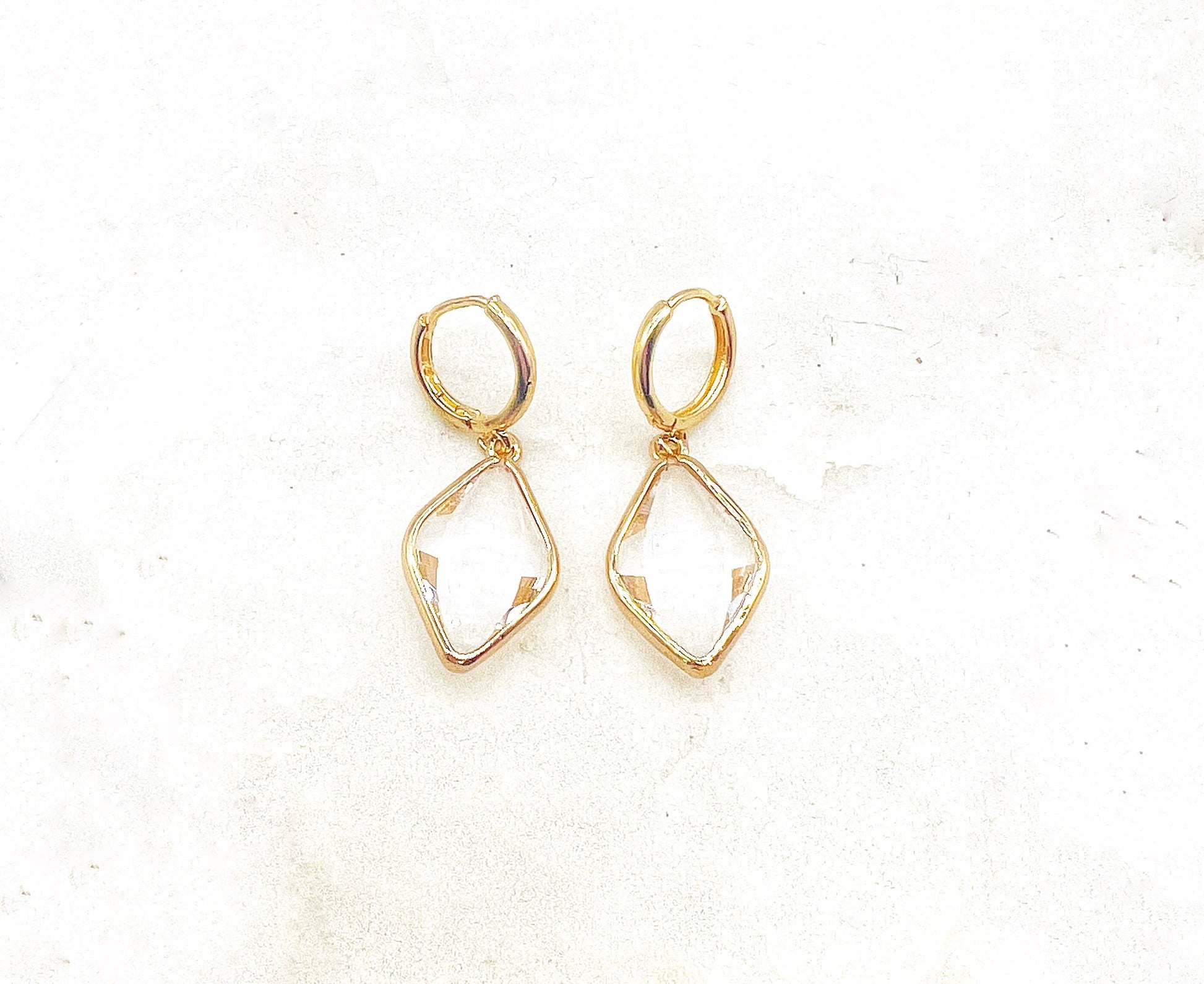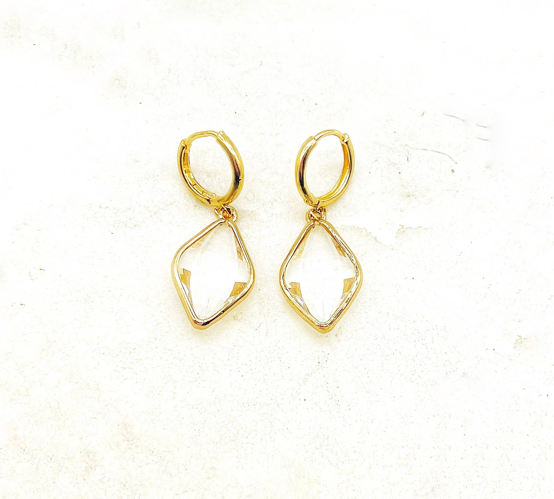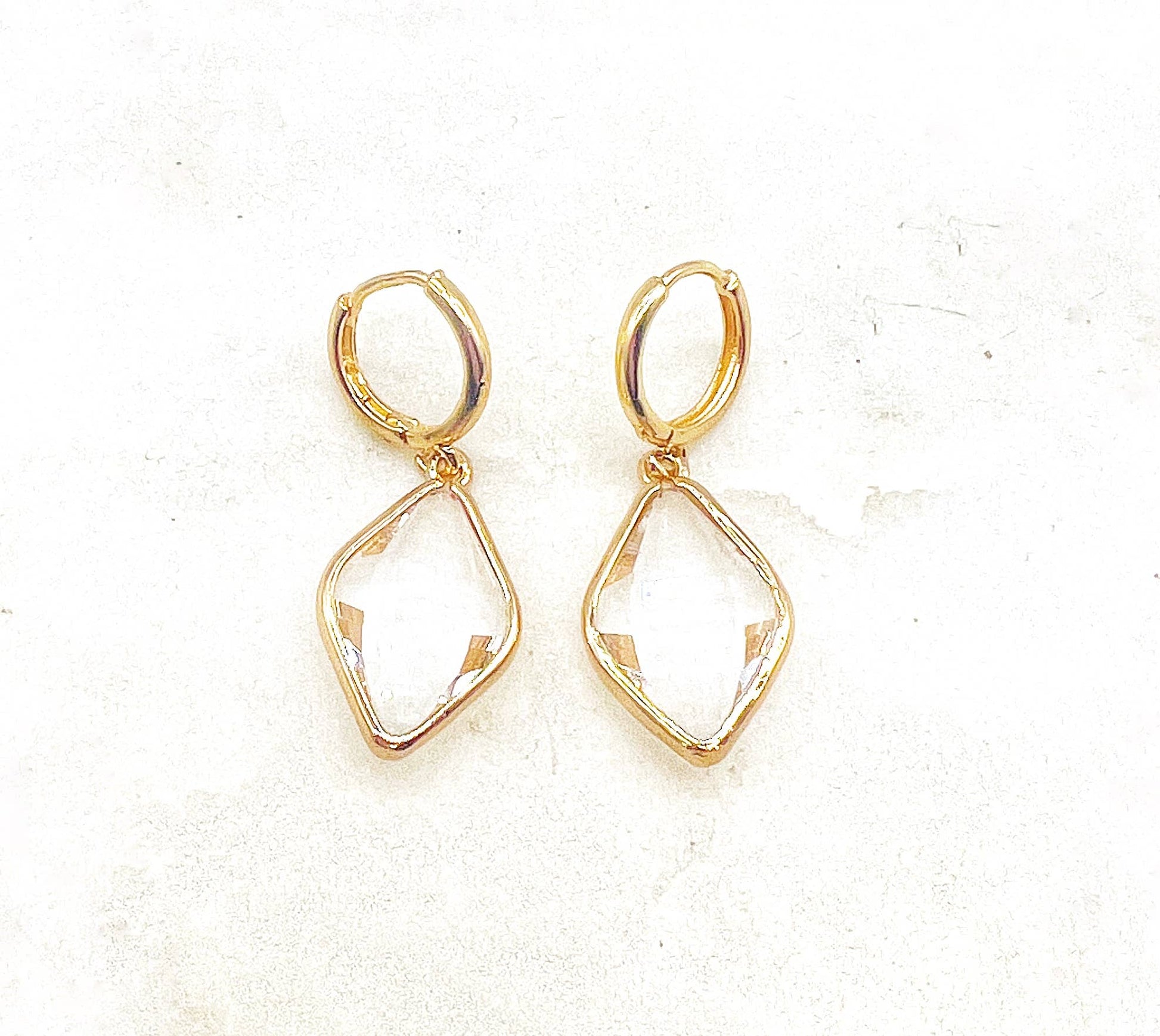 Gorgeous huggie hoops with pretty diamond shaped gem.