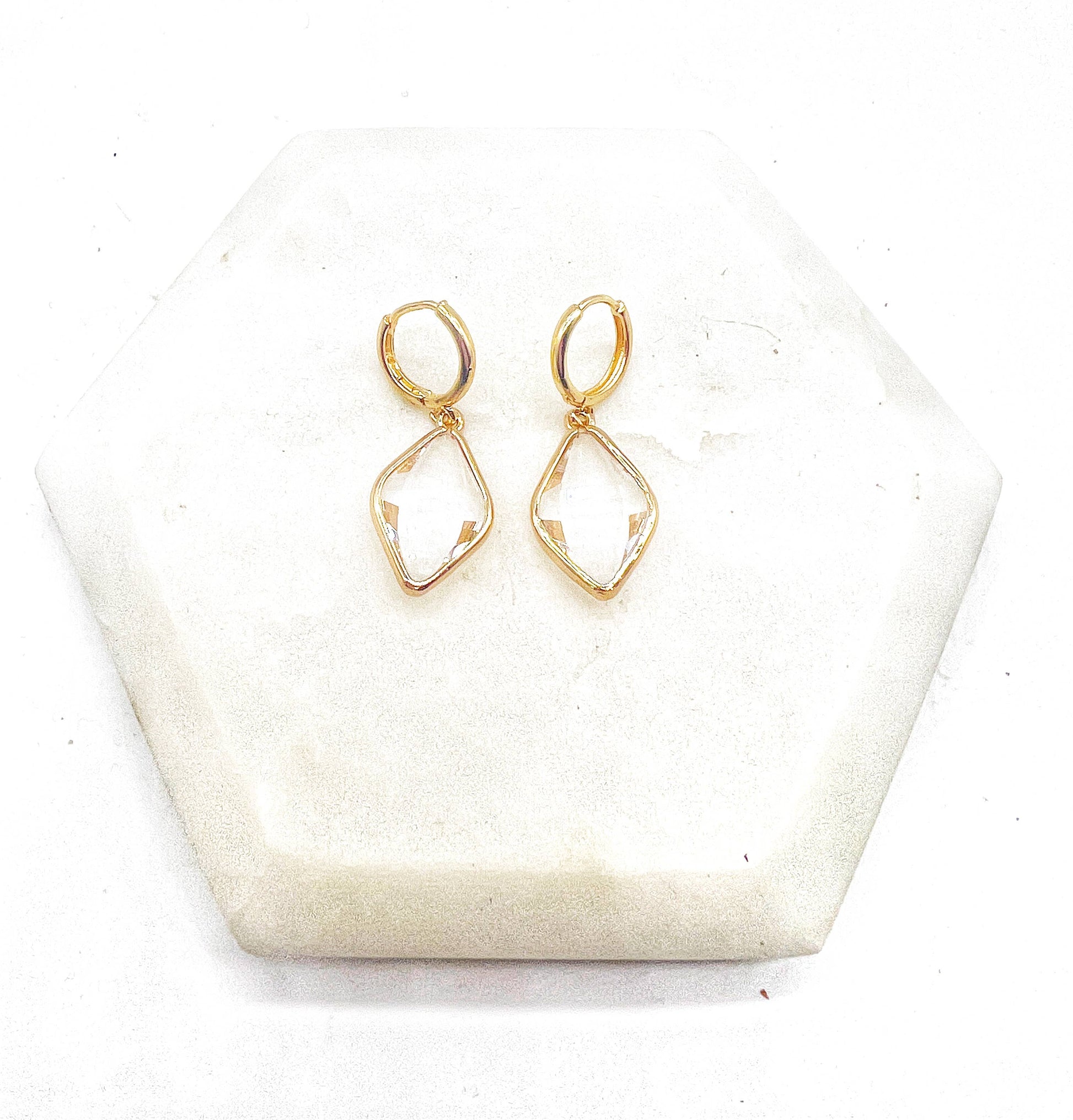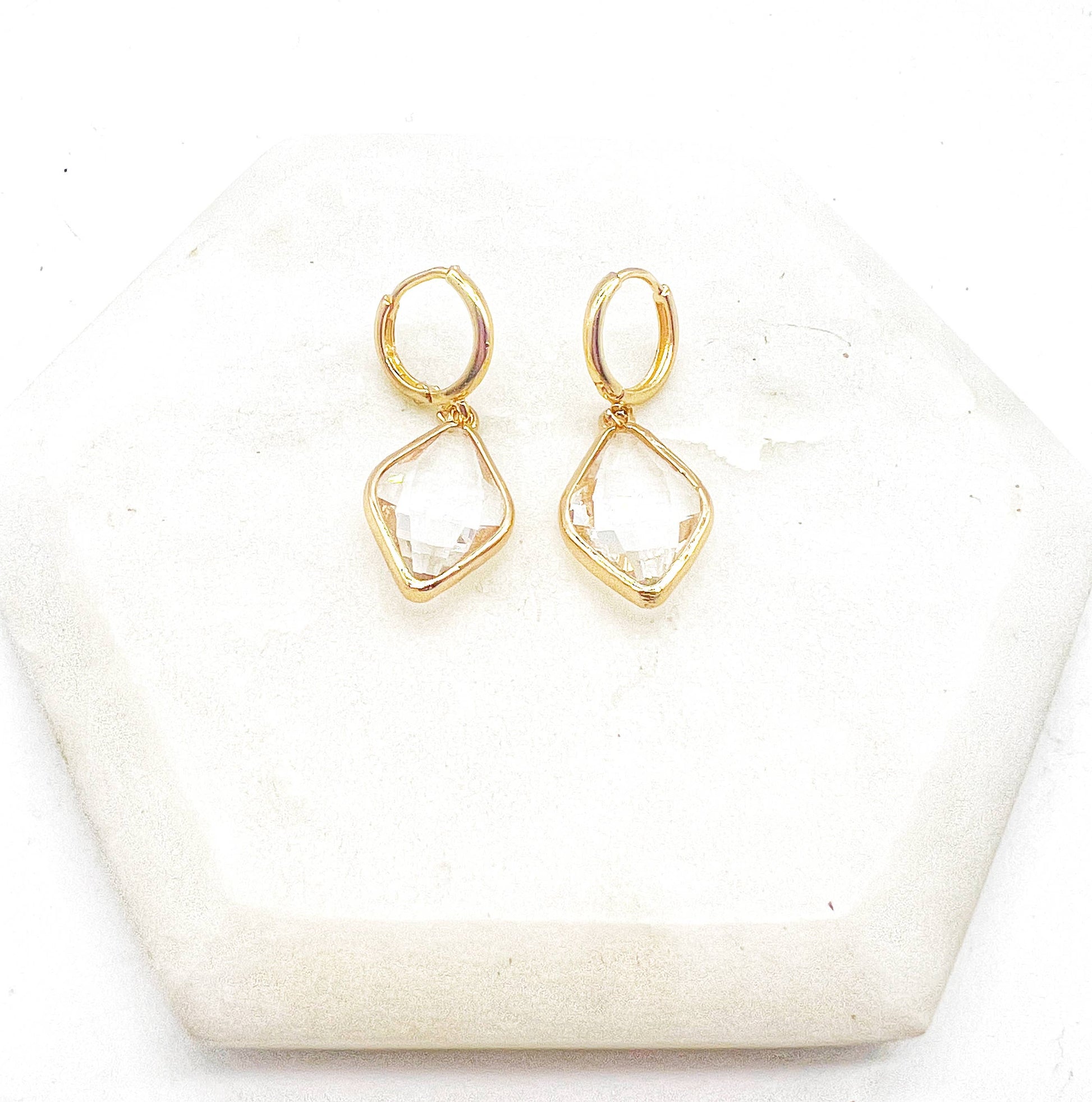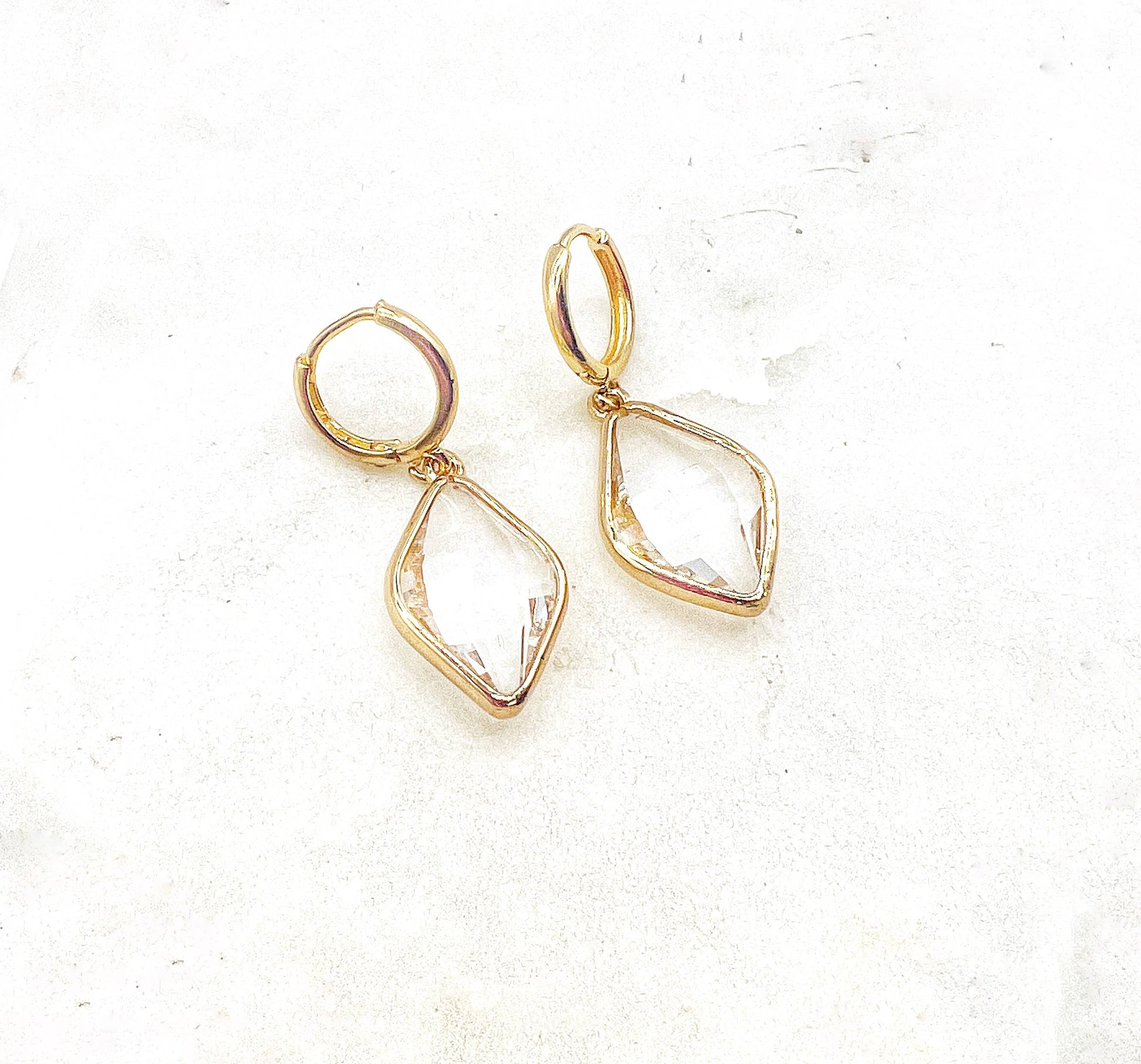 Gorgeous huggie hoops with pretty diamond shaped gem.