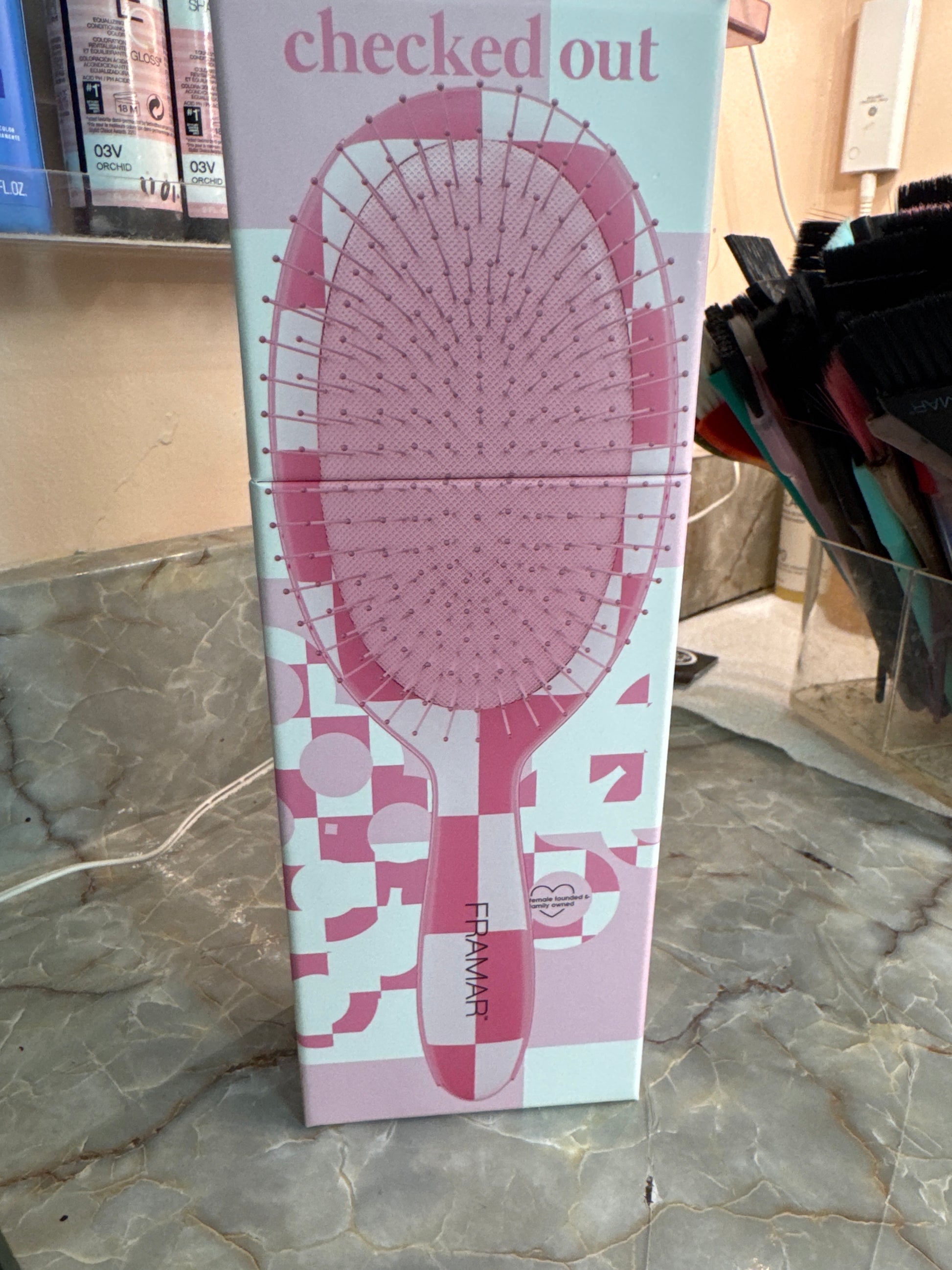Framar brand wet brush! Great for detangling your hair in a gentle manner!