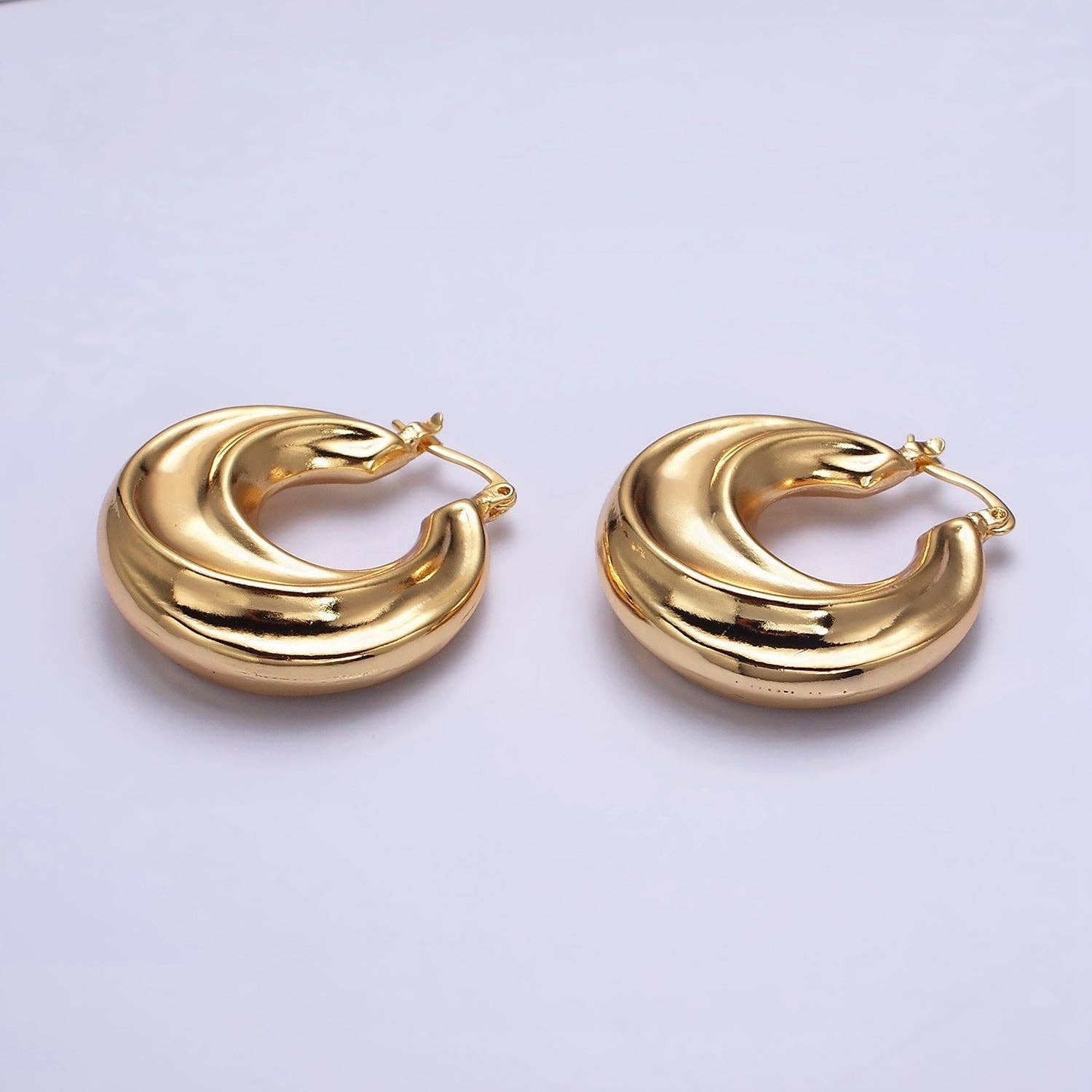 Gold Filled 30mm Chubby Twirl French Lock Latch Hoop Earring
