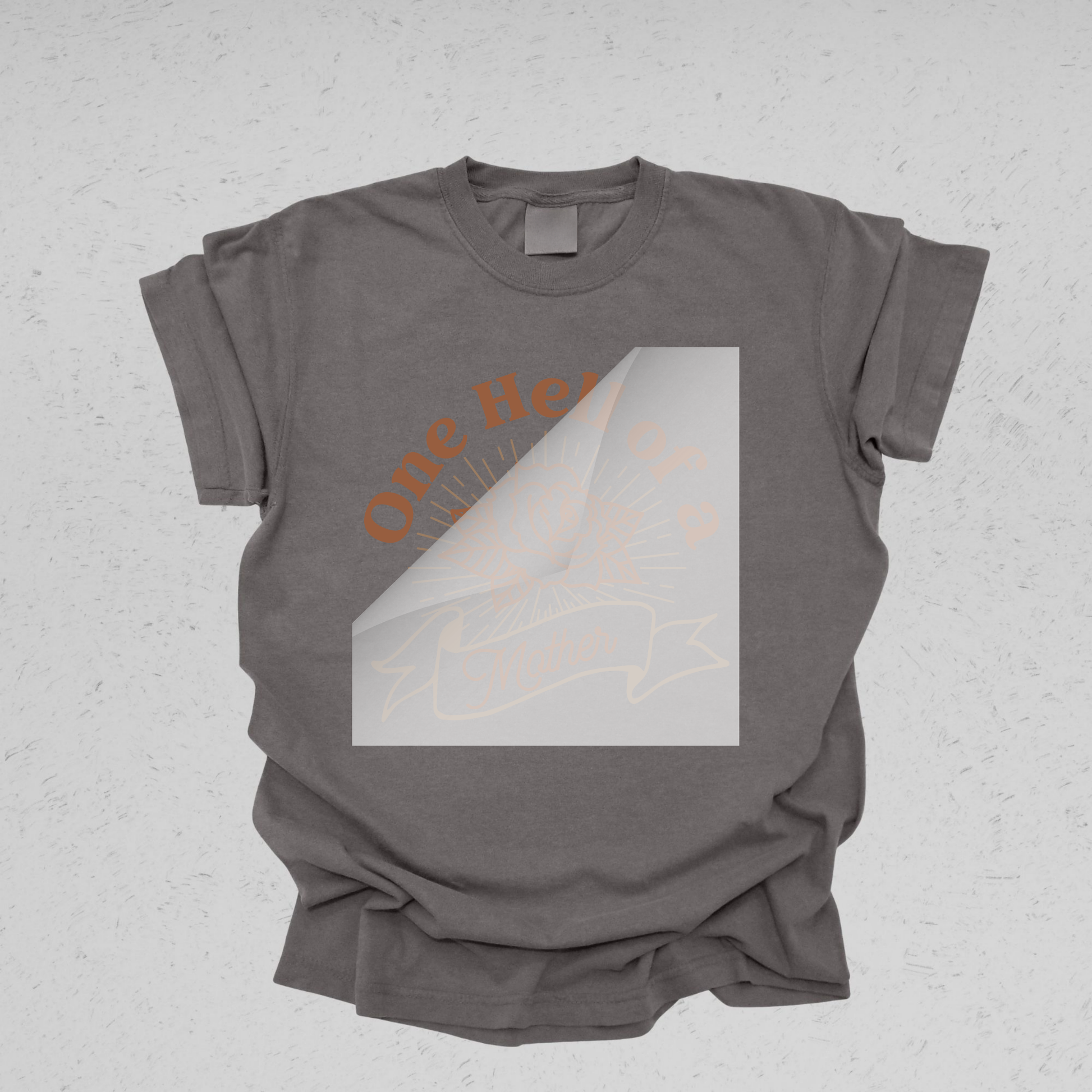 Introducing our latest addition to the DTF transfer collection - the "One Hell Of A Mother" design. This striking transfer features a bold and eye-catching design that is sure to make a statement on any garment or accessory. With its vivid colors and intricate details, this transfer is perfect for creating one-of-a-kind pieces that will turn heads wherever you go.